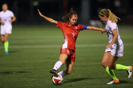 Less than 10 minutes into the second half, the Red Storm were determined to get on the board. After Madeline McCracken sent a pass to Connors, the junior found the back of the net for her third goal of the season. Connors tucked the shot just under the bar for the tally.