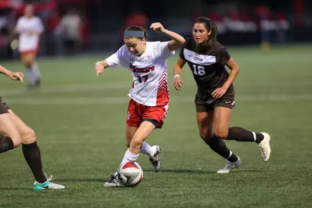 From there, the two sides remained quiet until the Johnnies looked to get on the board just before halftime. In the closing seconds of the opening frame, redshirt freshman Zsani Kajan ripped a shot that hit the crossbar and Madeleine Watson's try on the rebound was saved. Then, seconds later, Kajan had another shot blocked and the two teams went into the break scoreless.