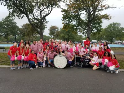 QUEENS, N.Y.- The St. John’s dance, cheer and band programs all participated in the Making Strides Against Breast Cancer event over the weekend by showing support and encouraging the walkers as they took part in the race.