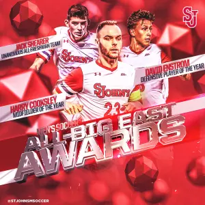 QUEENS, N.Y. - After leading the Red Storm to its best BIG EAST regular season since 2009 with a 5-2-2 record, three St. John's players have been recognized by the conference for their efforts throughout the campaign.