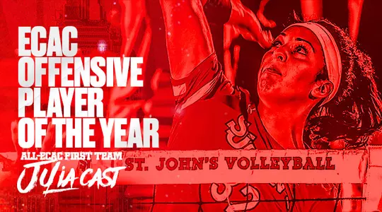 QUEENS, N.Y. ââ'¬" Following a stellar senior campaign to close out an outstanding Red Storm career, Julia Cast was named the Eastern College Athletic Conference (ECAC) Offensive Player of the Year and a spot on the All-ECAC First Team as announced by the organization on Thursday morning.