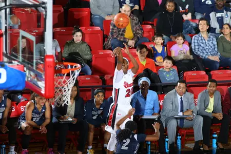 Wellere, who had struggled from long distance over the past four games, found her rhythm early and seemed unstoppable at times. The sophomore finished with a team-high 19 points on 7-of-11 shooting. The Chicago, Ill., native entered the game just two for her last seven from behind the arc, but that didn't stop her from letting it fly on Sunday as she connected on four of her six tries from deep.