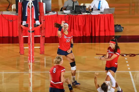 Currently ranked second in the conference in kills per set and top 25 in the nation in total kills, Julia Cast picked up a match-high 16 kills in only three sets on an outstanding .406 attacking percentage. The senior from New York also made an impact on the defensive end with a season-high four blocks. Danisha Moss played an extremely efficient all night with seven kills on 11 swings for a match-high .545 hitting percentage. The Toronto product notched three blocks to put her in a tie for third all-time with LaToya Blunt in Red Storm history with 397 blocks.