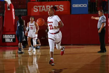 Akina Wellere, who missed the previous three games with an injury, scored her first basket in return with a nice drive and finish on a layup to open the scoring in the fourth quarter.