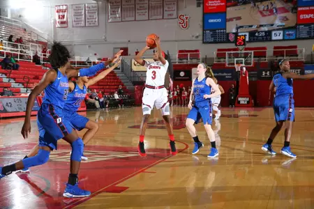 Maya Singleton continued to produce for the Johnnies, recording her 16th double-double of the season. The Indian Head, Md., native finished with 11 points on 5-of-8 shooting to go along with 10 rebounds for the Red Storm.