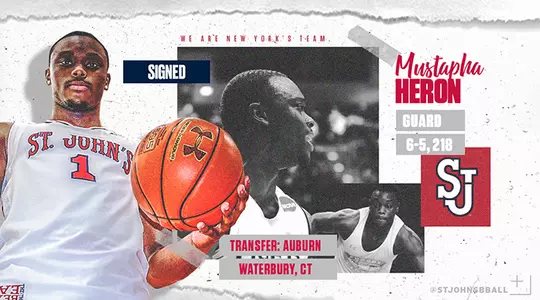 QUEENS, N.Y. - Head Coach Chris Mullin and the St. John's men's basketball program received a commitment from highly-touted transfer Mustapha Heron, who comes to Queens after two seasons at Auburn. The 2018 Second Team All-SEC selection must complete one full academic year of residency before competing for the Red Storm per NCAA requirements, but he is expected to apply for a hardship waiver in order to gain immediate eligibility.
